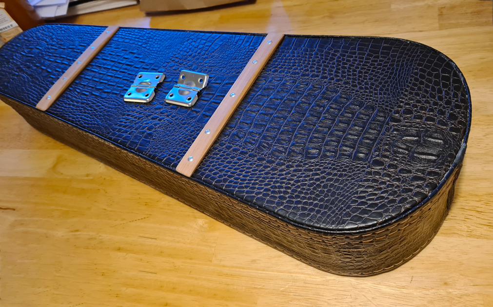 Mon ukulélé ayant reçu des coups au travers de son étui souple de transport, je rêvais de lui offrir une boite de transport. Au travers de mes balades dans les rues de Paris j’ai trouvé parmi les encombrants, du contreplaqué 3 plis de 3 mm et dans une boutique un magnifique skaï façon crocodile. Cela m’a donné la base de départ pour réaliser une belle boite de transport.