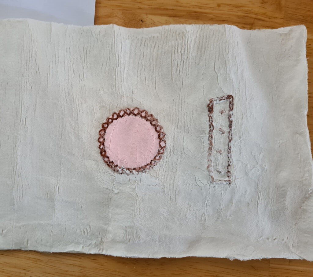 La broderie terminée, un nouvel amidonnage a redonné du maintien au tissu qui me permet désormais de réaliser une découpe très propre.