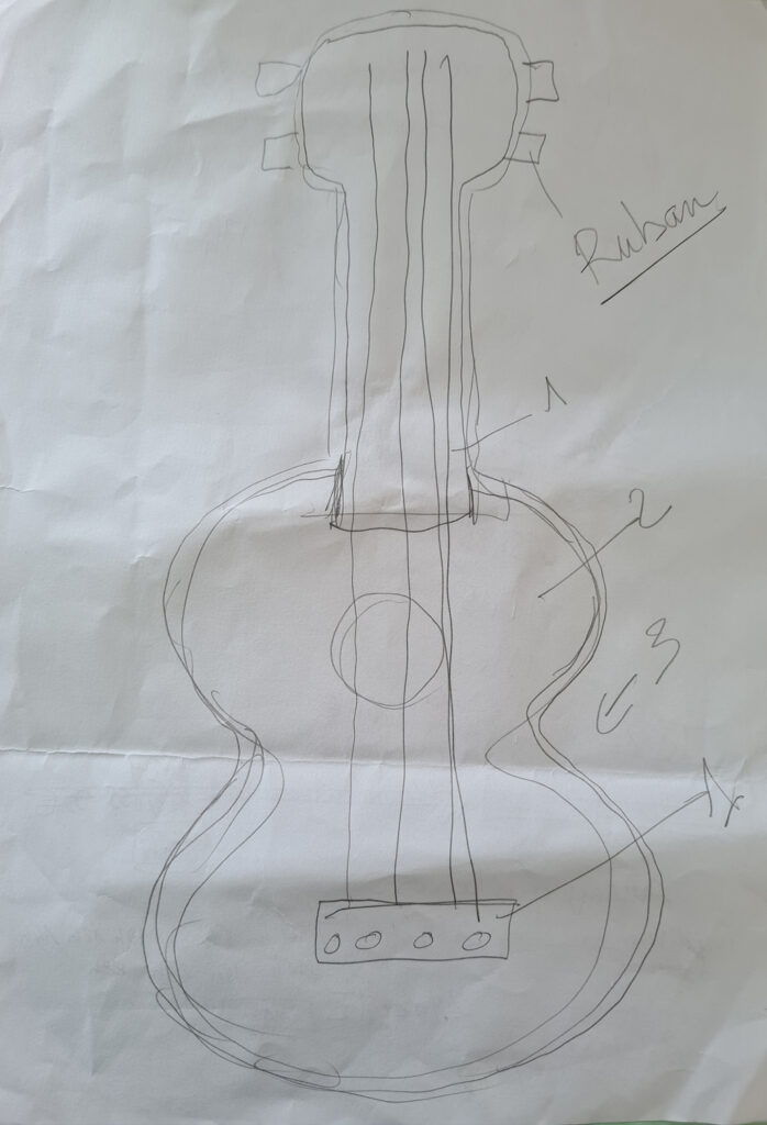Tout a commencé par un simple croquis, devenu plan, puis patron de découpe. C’est ainsi qu’est née la première version du Doudoulélé. Cette maquette en lin