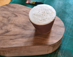 Le ponçage méticuleux de la caisse permet d’en apprécier le beau volume. À l’aide d’une cale conique recouverte de toile émeri, j’ajuste la bouche au diamètre souhaité.