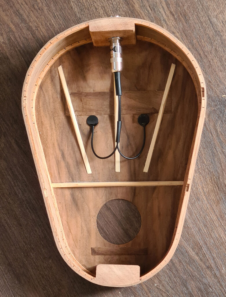 L’une des spécificités de cette commande a été l’installation d’un système d’amplification. Le micro choisi est celui conseillé par Thomas : le K&K Aloha Twin, un modèle à double pastilles piézoélectriques. Pour plus de détails, vous pouvez consulter la chaîne YouTube de Thomas Mastomo.