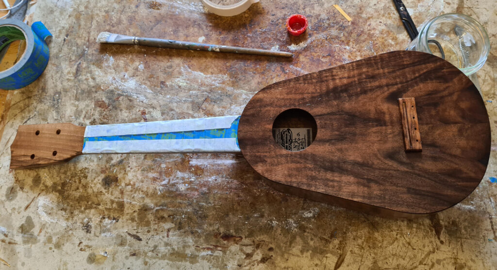 Douze couches d’huile Danoise seront appliqués pour vernir le ukulélé. Chaque couche me demande le temps de 1 H 30 à 2 H et je respecte le temps de séchage de 24 H minimum